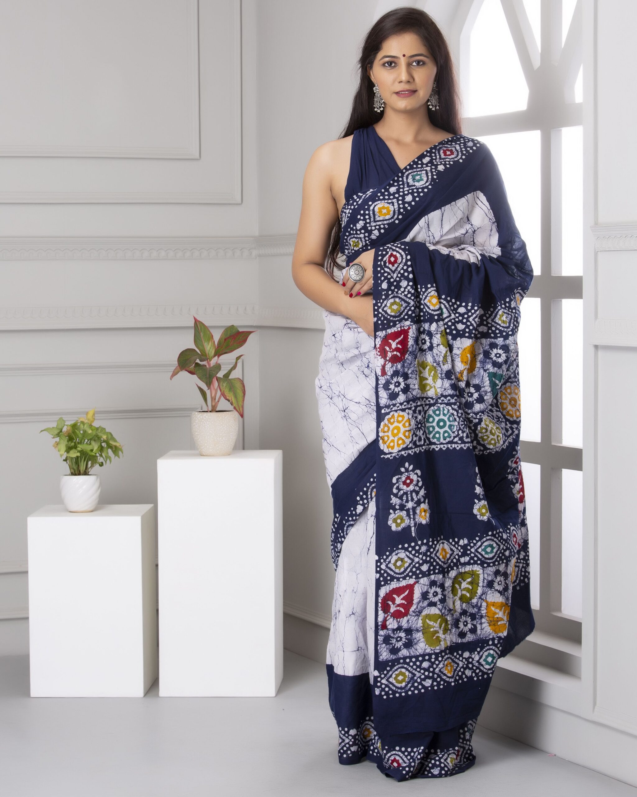 Batik Print Mulmul Cotton Saree combines style and comfort for everyday wear. Breathable design and cushioned support keep you comfortable all day. Ideal for city walks, errands, and casual outings. Durable construction and versatile style for any occasion.