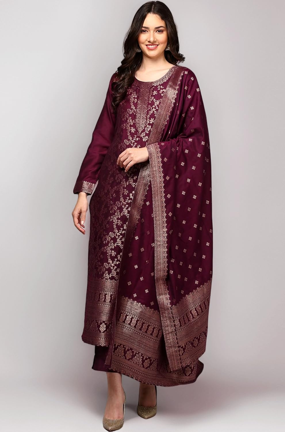 Brocade Silk Straight Suit combines style and comfort for everyday wear. Breathable design and cushioned support keep you comfortable all day. Ideal for city walks, errands, and casual outings. Durable construction and versatile style for any occasion.