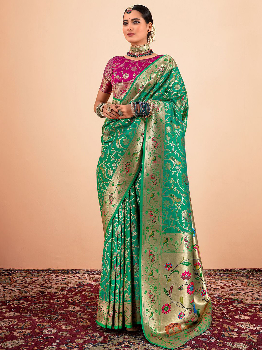 Irani Turquoise Satin Saree combines style and comfort for everyday wear. Breathable design and cushioned support keep you comfortable all day. Ideal for city walks, errands, and casual outings. Durable construction and versatile style for any occasion.