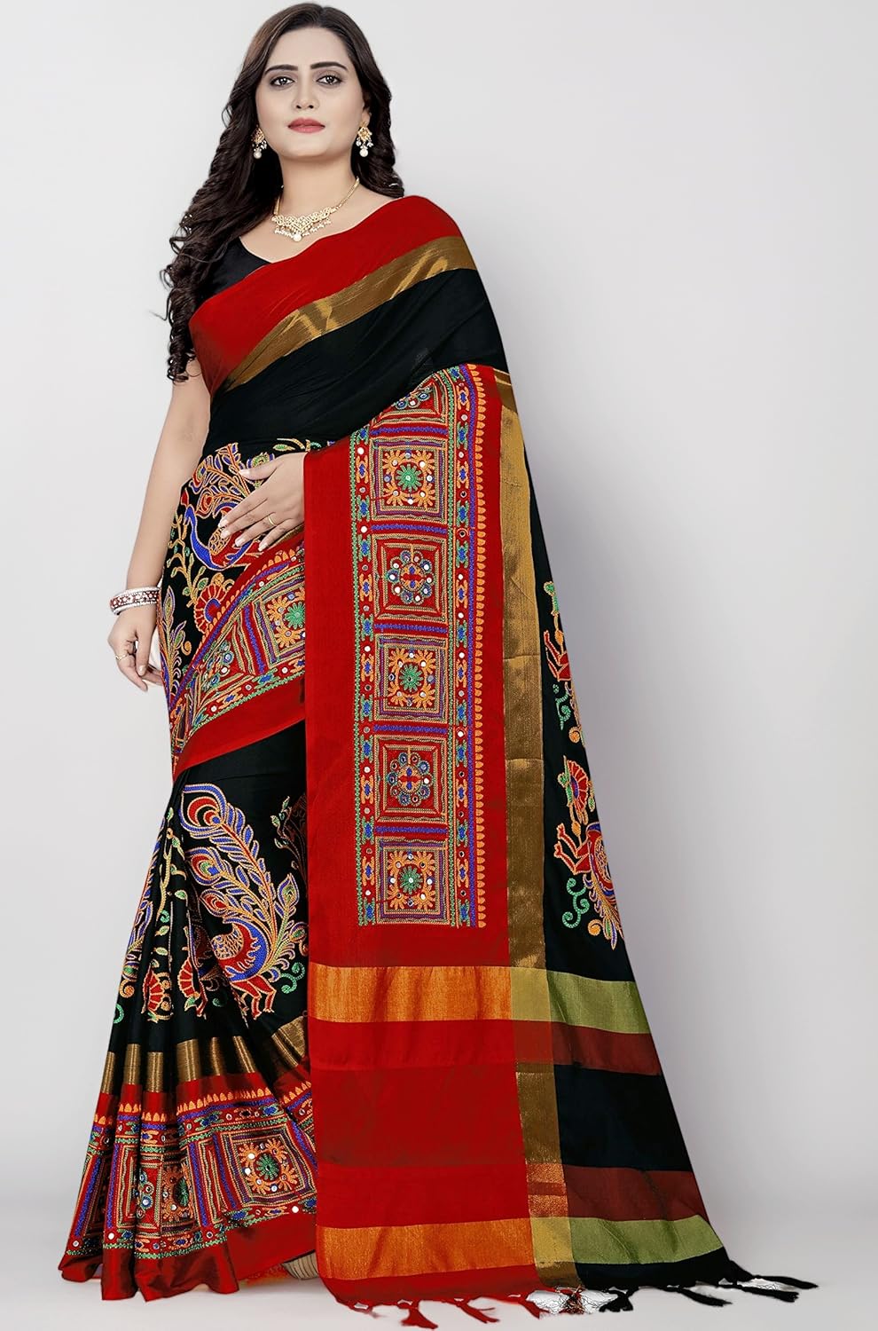 Kutch Embroidery Mirror Saree combines style and comfort for everyday wear. Breathable design and cushioned support keep you comfortable all day. Ideal for city walks, errands, and casual outings. Durable construction and versatile style for any occasion.
